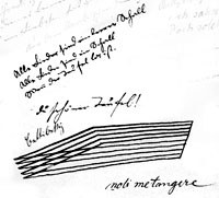 Am Anfang, im Zentrum steht die Selbstzensur. Während sonst auf dem ganzen Blatt alles 'gilt', ist hier das unter dem (lesbar bleibenden) Namen Stehende sorgfältig unkenntlich gemacht. Die Obsession dieses intimen und indiskreten, geschwätzigen und nichts sagenden Werkes wächst nicht aus dem Schweigen, sondern aus der Zurücknahme, nicht aus dem Ausdruck, sondern aus der Unterdrückung der Rede. Selbstdurchstreichung, unlösbar, unlesbar. Die Frage an Betty (nach ihren Verehrern? nach dem Publikum in ihrem Kasperltheater?) bleibt unbeantwortet. Einer jedenfalls macht sich zum Zuschauer, Verehrer, Narren und will es nicht zeigen (wie Pankraz vor Lydia). Das Theater beginnt trotzdem.