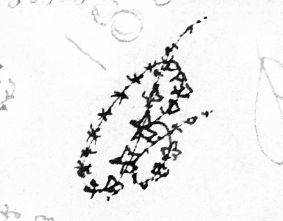 Als kleiner Beitrag zu einer gründlichen Lektüre des Ganzen soll hier eine der vier Seiten im Hinblick auf ihre Ikonologie betrachtet werden (eine vollständige kommentierte Transkription ist im Rahmen der Historisch-Kritischen Gottfried Keller-Ausgabe in Vorbereitung). Die reale Chronologie der Eintragungen kann dabei im einzelnen nicht rekonstruiert werden; immerhin scheint klar, daß es sich um die als erste gefüllte Seite handelt. Im Unterschied zu den bisherigen frei assoziierenden Beschreibungen soll der Blick dabei wenigstens einem topographischen 'System' folgen: der Spirale, gegen den Uhrzeigersinn von innen nach außen führend. Diese Konstellation - viele andere sind denkbar! -, dieses 'astronomische' Muster wird dem Wirbel der ausgedrückten Gehalte zumindest nicht ganz fremd sein.